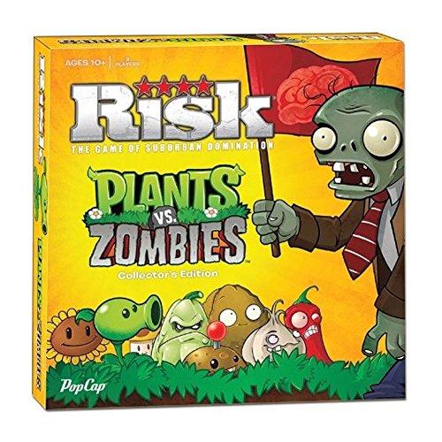America's favorite iPhone game is coming to life now in RISK : Plants vs. Zombies Collector's Edition. Experience a fast-paced 2 player version of RISK that provides players with three new modes of play based off the Plants vs. Zombies game. Don't let the Zombies eat your brains. Special Features 3 new fast-paced ways to play for the quick game play loving fans Double sided game board featuring customized suburban neighborhood map Game Play 3 ways to play based off of Plants vs. Zombies app. 1. Mission Objective 2. Total Domination 3. Tower Defense Includes Custom highly-detailed plastic playing pieces 2 custom sculpted Armies: Pea Shooter and Brown Coat Zombie Custom Cardboard Tokens include Homes, Objectives, Coins, Obstacles 72 Faction/Territory cards Custom double-sided game board includes 3 ways to play including Mission Objective, Total Domination and Tower Defense 7 Custom dice: 2 defense, 3 offense, 2 bonus attack dice Game Board: Features custom map including a suburban neighborhood and town inspired by the Plants vs. Zombies world. Great for Gift giving Family game nights Plants vz. Zombies Collector's item.